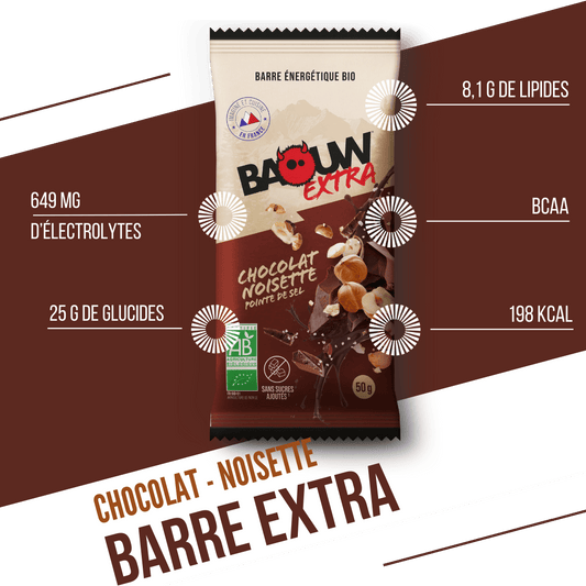 Baton energetyczny BAOUW ORGANIC EXTRA Czekolada z orzechami laskowymi (50g)
