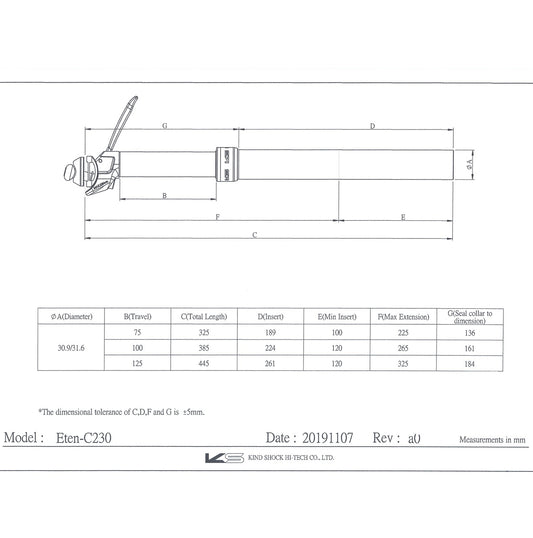 KS KIND SHOCK ETEN REMOTE Telescopic Seatpost