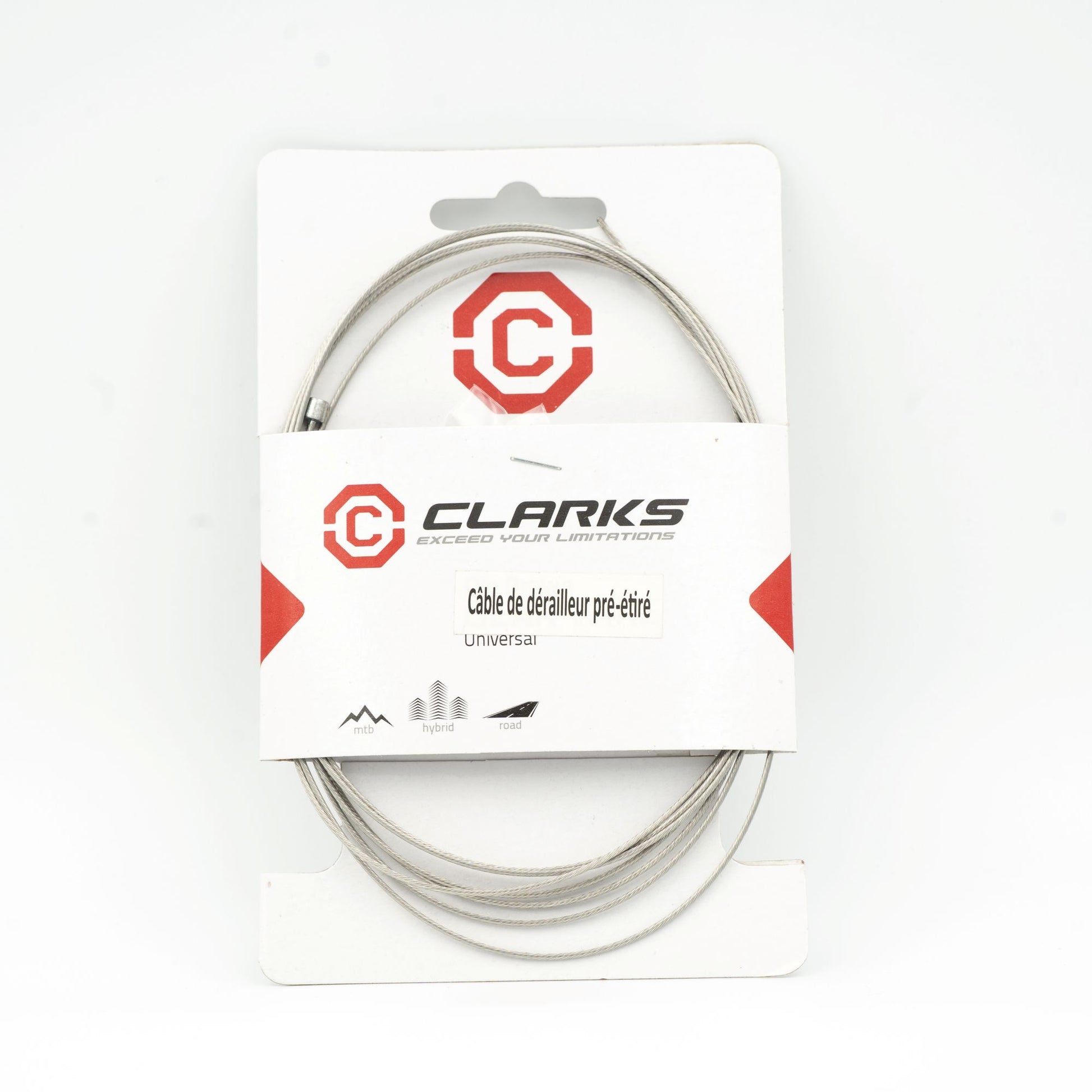 The CLARKS DIE DRAWN derailleur cable at stainless steel offers exceptional performance thanks to its ultra-smooth surface obtained by a hammering and drawing process.