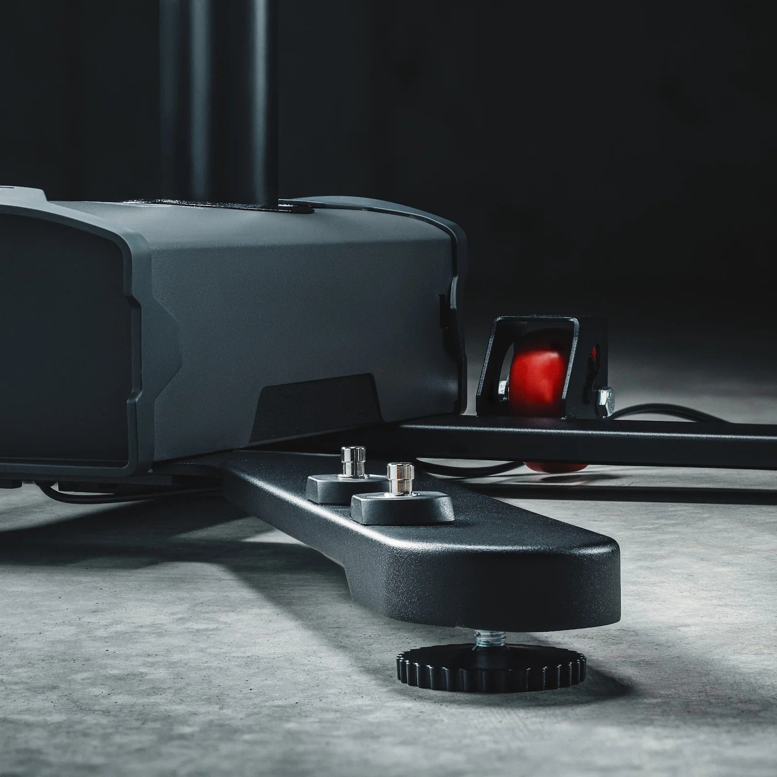 Le levage est entièrement électrique et actionné au pied, libérant les mains pour les réglages et réparations. Avec une hauteur minimale de 91 cm, le vélo peut être facilement roulé sur le support, tandis que la hauteur maximale de 185 cm permet d’atteindre tous les composants, même les systèmes de transmission des e‑bikes. La fonction de détection de collision garantit une descente sécurisée du vélo, protégeant à la fois l’utilisateur et le cadre.
