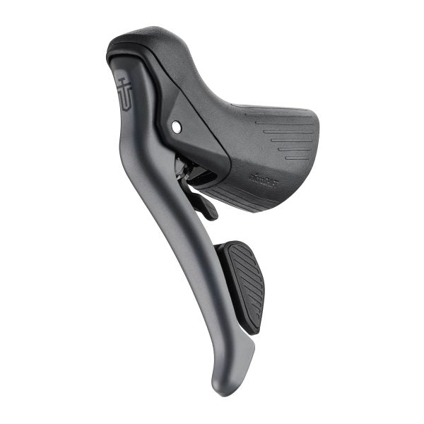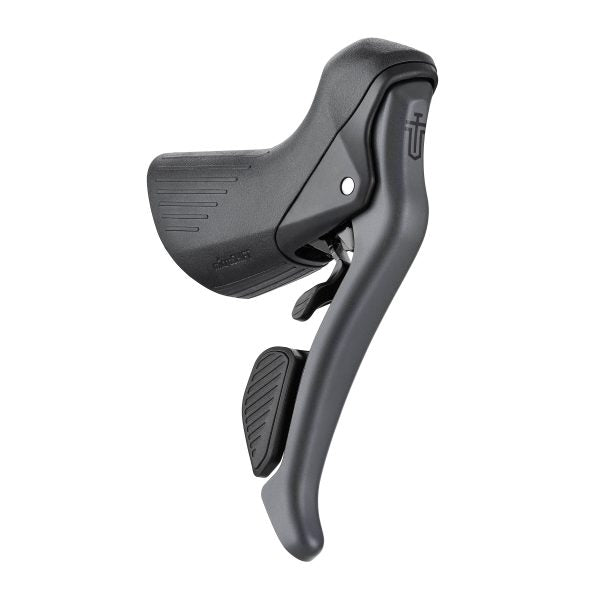 Designed for flared handlebars, the cockpit offers optimized ergonomics. Rounded-edge cockpits reduce pressure points, while the textured hood ensures a firm grip, even in wet weather. The high-pivot brake lever improves leverage and increases braking power thanks to an optimized cable pull. Brake and gear levers remain fully independent for precise adjustment.