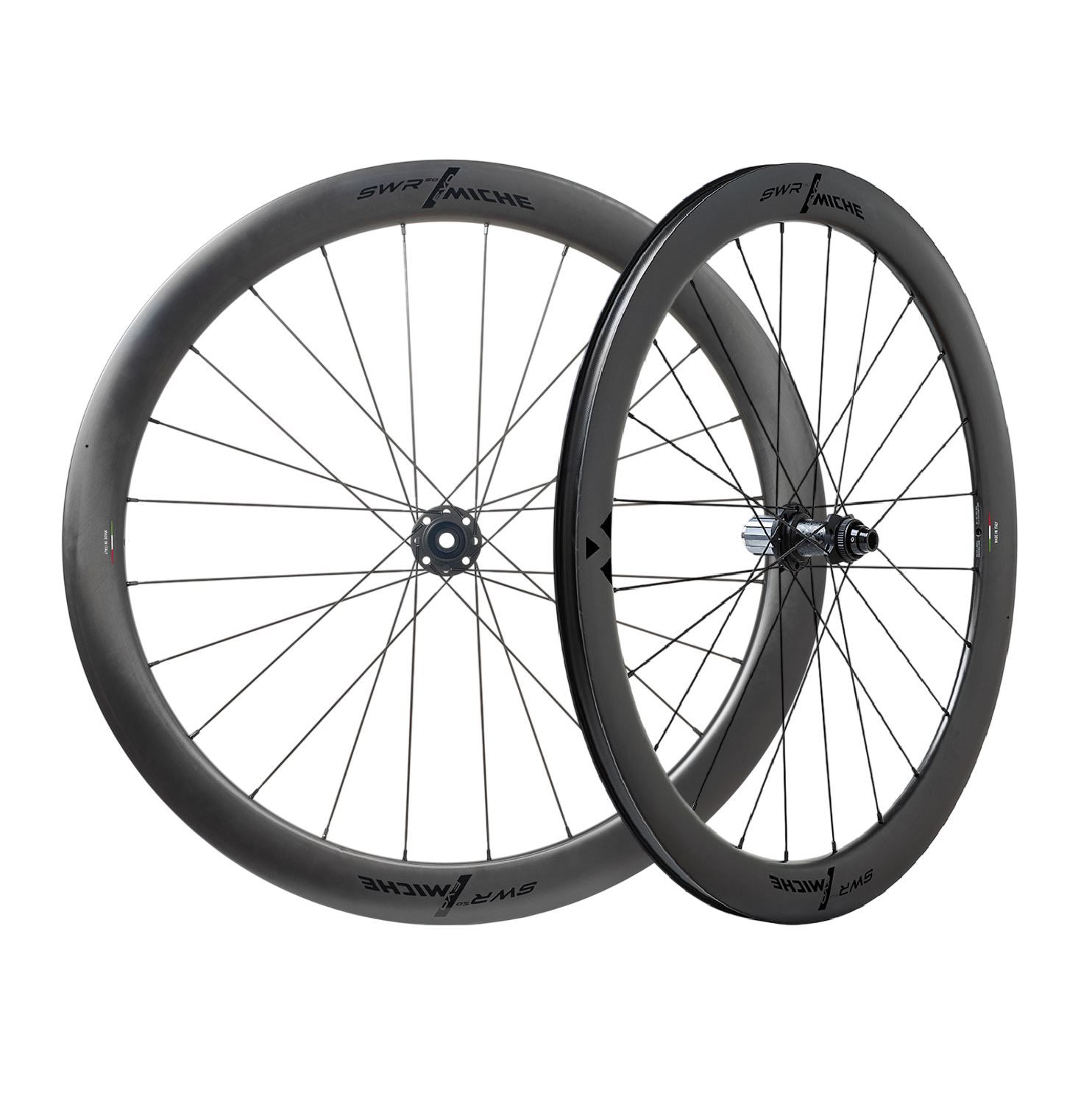Visit pair of MICHE SWR EVO 50 DISC Tubeless Ready wheels wheelset marks a turning point in Miche's evolution towards ultimate road performance. Representing the brand's entry into the high-end carbon wheel segment, this model combines innovation, precision and Italian tradition. Every component has been carefully thought out to guarantee lightness, rigidity and fluidity, with a design conceived for the most demanding cyclists.