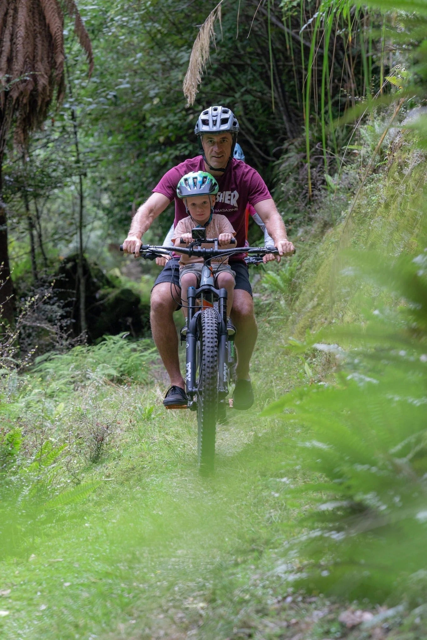 Est-ce difficile de pédaler avec l'enfant devant ? Il faut légèrement écarter les genoux au pédalage, mais on s'y habitue très vite. La position centrale est beaucoup plus stable pour le pilotage technique qu'un poids suspendu à l'arrière du vélo.