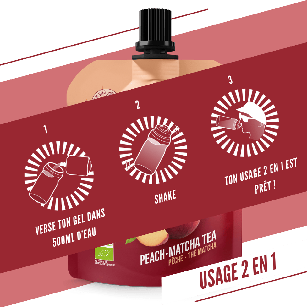 Zaprojektowany z myślą o intensywnym wysiłku, żel ten składa się z 100% składników organicznychbogaty w niezbędne mikroelementy (wapń, magnez, żelazo, potas). Nie klei się, jest płynny i bez chemicznego posmakuJest łatwo przyswajalny, bez efektu pasty. Jego zamykana butelka można spożywać w kilku dawkach, maksymalnie do 2 żele na godzinę dla 60 g węglowodanów.