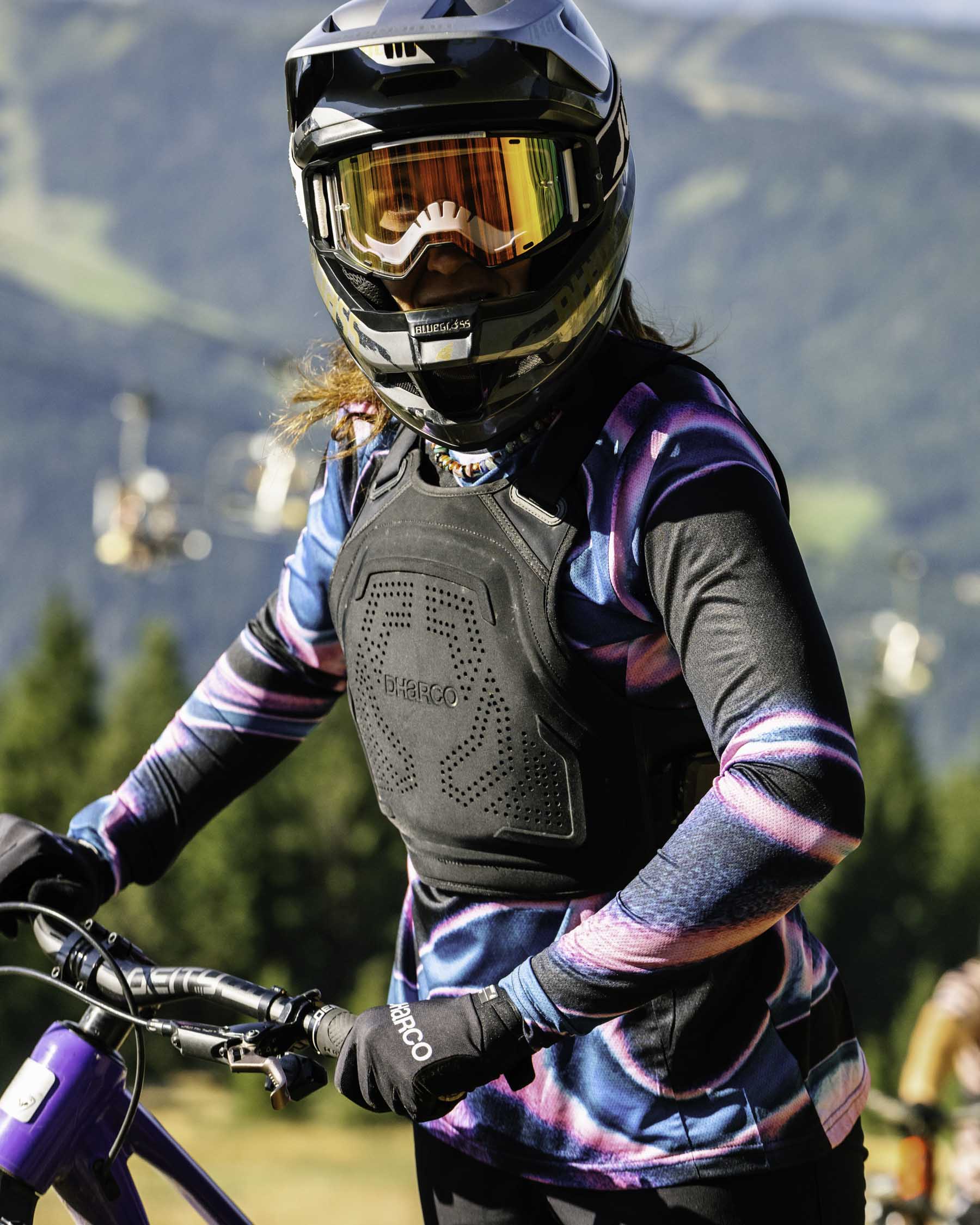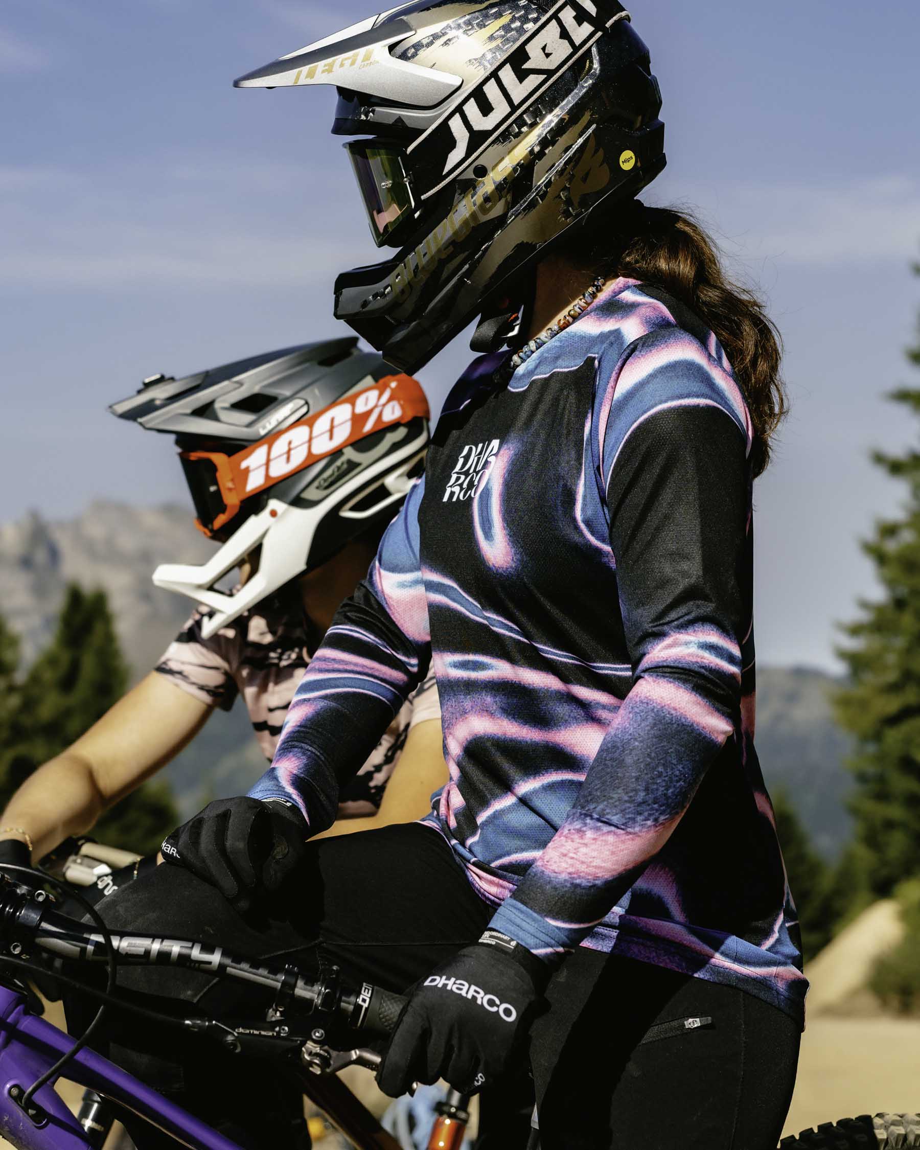Damska koszulka DHARCO RACE została zaprojektowana dla rowerzystów, którzy lubią przekraczać swoje granice, ze stylem i determinacją. Jej design odzwierciedla pasję do kolarstwa górskiego i zachęca do pokonywania każdej linii z pewnością siebie.