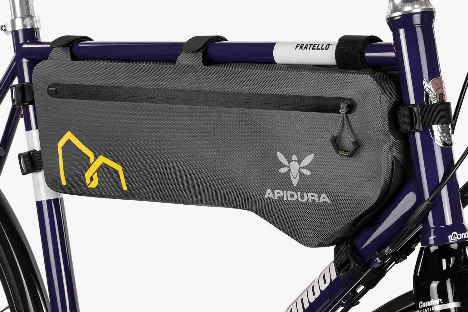 Disponible en plusieurs tailles pour s’adapter à différents cadres, la sacoche compacte convient aux géométries modernes en carbone ou aluminium, tandis que la version haute (Tall) est pensée pour les cadres acier ou titane avec des tubes de direction plus longs. L’utilisation de notre outil de dimensionnement interactif permet de choisir le format idéal pour chaque vélo.